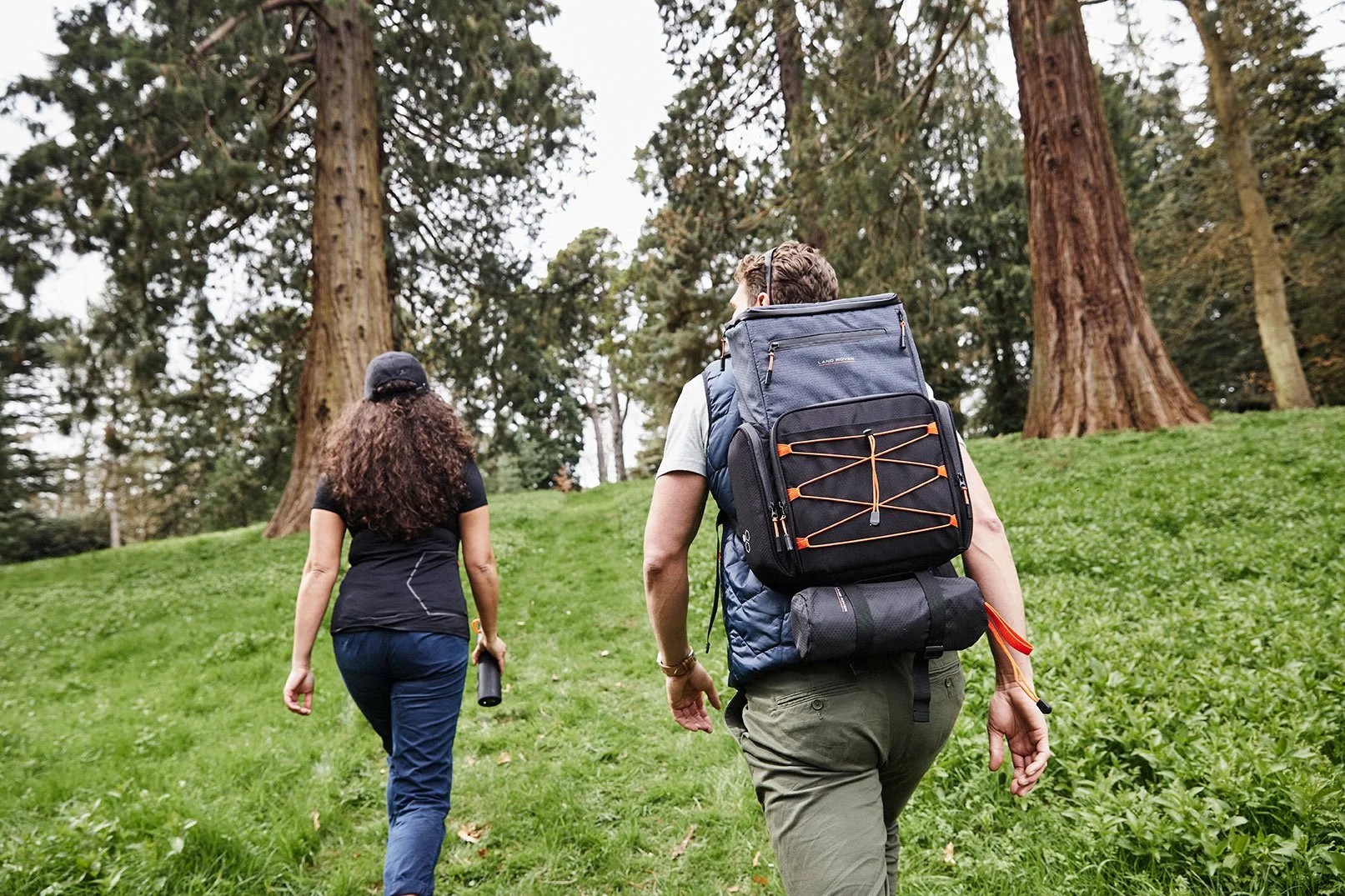 Couple getting their kit ready to go for a hike in the great outdoors.